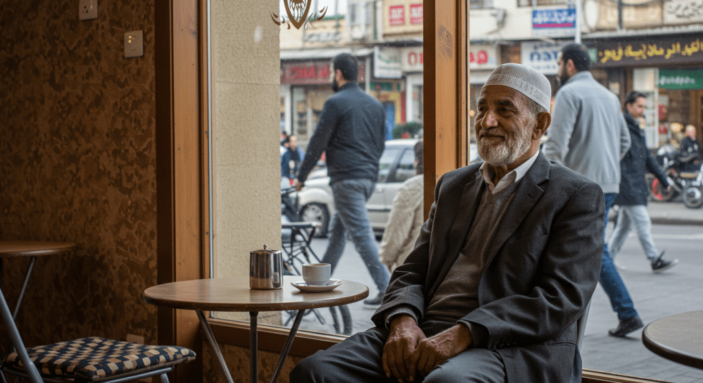 في شارع ضيق في حي السيدة زينب، كان الحاج عبد الرحيم يجلس كل صباح على كرسيه الخشبي المتهالك أمام قهوة “أبو رجب”، ركن صغير تحيط به جدران متشققة، وفوقه مظلة قماشية باهتة، الحاج عبد الرحيم، رجل تجاوز السبعين بقليل، كان يبدو كأنه جزء من القهوة نفسها، وجهه محفور كخريطة، عيناه غائرتان، وفي يده سبحة صفراء يداعبها بأصابع مرتجفة، كأنه يعد الأيام التي مضت أو ينتظر تلك التي لم تأت بعد، كان يرتدي جلباباً رمادياً باهتاً، وطاقية بيضاء مائلة على جبهته.