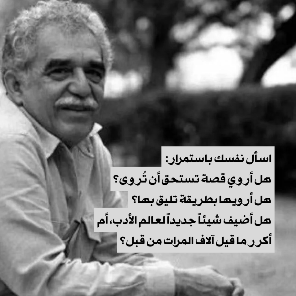 أتذكر كيف أمضيتُ سبعة عشر عاماً في كتابة “مائة عام من العزلة” – لم تكن هذه سنوات جلوس متواصل أمام الآلة الكاتبة، بل كانت سنوات نضوج؛ سنوات عشتُ فيها مع الشخصيات في ذهني، حتى أصبحتُ أعرف عاداتهم وأسرارهم أكثر مما أعرف عن جيراني، سنوات لاحظتُ فيها كيف يتحوّل لون أوراق الشجر في الخريف.