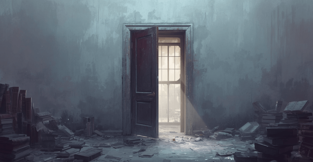 أنا بابٌ خشبيٌّ مهترئ، مخلوع داخل منزلٍ مهجور في مدينةٍ تضجّ بالمحالّ التجارية والبنايات الشاهقة.