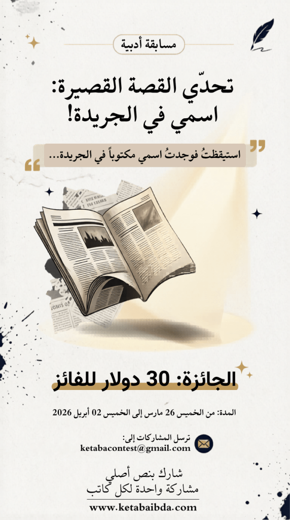 1. يجب أن تبدأ القصة حرفياً بهذه الجملة: “استيقظتُ فوجدتُ اسمي مكتوباً في الجريدة…”