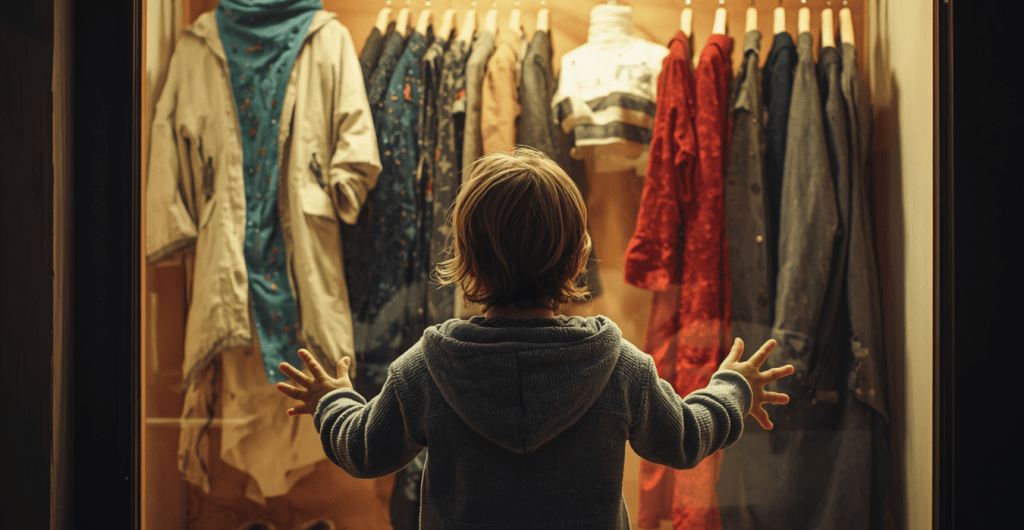 ابتسم الطفل وهو يخلع ثيابه واحداً تلو الآخر، ثم بدأ في لبس ملابسه الجديدة، قال الطفل في فرح: