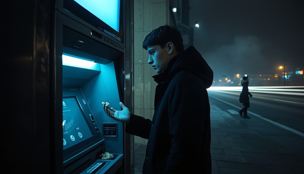 يسحب البطاقة ويُعيد إدخالها، لكن بدون جدوى. “الملاعين لم يحوّلوا الأجرة البائسة” يقول مخاطباً اللاشيء، وصوت احتجاج يأتي من خلفه “اسمحلي أن أسحب.. فأنا على عجل”.